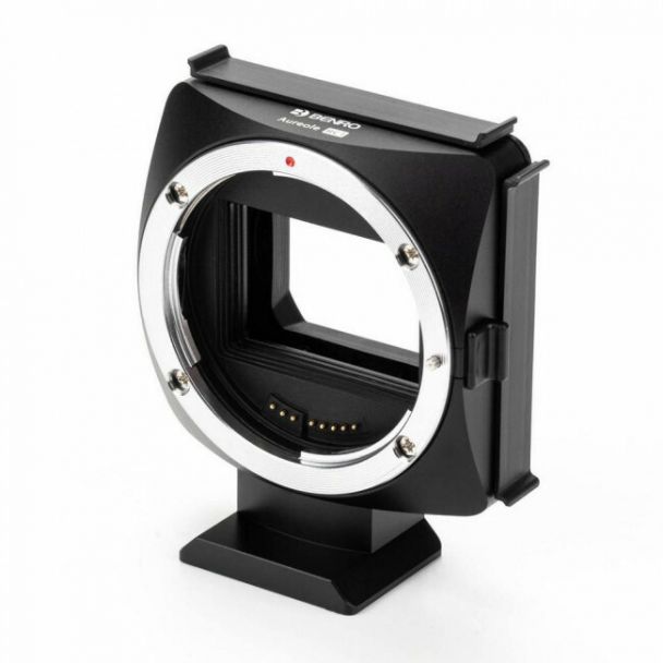 Het Benro Aureole filter-adapter systeem maakt het mogelijk om Canon EF lenzen op een RF camera te gebruiken, met behoud van de autofocus. Buiten een adapter is de Aureole ook een filterhouder voor drop-in filters. Daarmee kun je tot twee verschillende filters tegenlijk gebruiken, ongeacht welke lens je gebruikt. De adapter is voorzien van een statiefmount waarmee je de camera met adapter en lens op je statief kunt monteren.