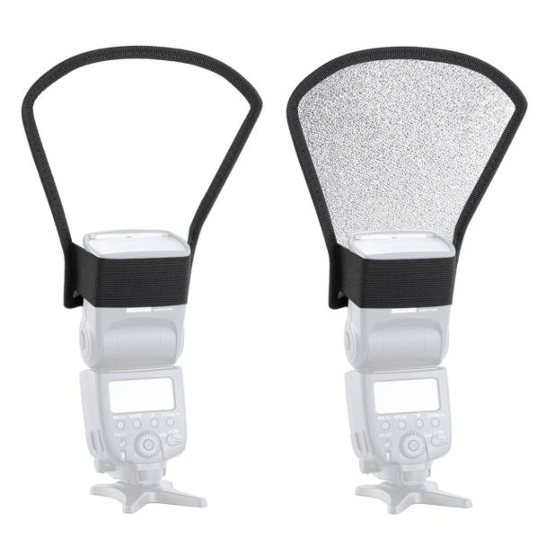 Bounce Card / Flag voor reportageflitser – 2-in-1 reflector (zilver & wit)