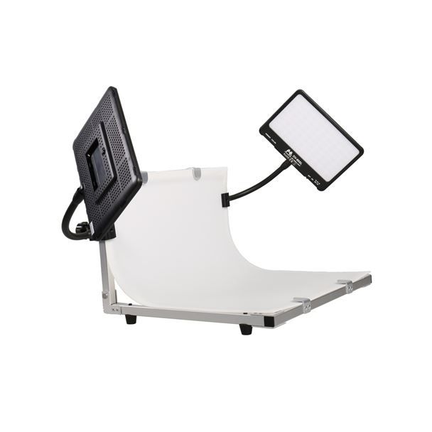 De DVK-380SL van Falcon Eyes is een opnametafel met LED verlichting, welke geschikt is voor het fotograferen van diverse producten. Een object tot ongeveer 20x20x20cm kan met een witte achtergrond worden vastgelegd. De drie LED lampen kunt u van alle zijden op het product laten schijnen, om schaduwen te voorkomen en een natuurlijke weergave van het product te realiseren. De witte achtergrond loopt naadloos over van de horizontale zijde in de verticale zijde, waardoor u een mooie egale weergave kunt creëren.