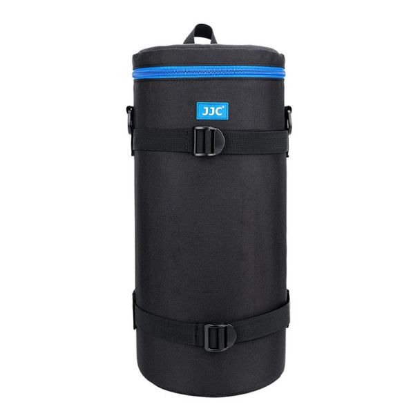 De JJC DLP-8II Deluxe Lens Pouch is de ultieme bescherming voor grote telelenzen, zoals een Sony FE 200-600mm, Canon RF 200-800mm of Sigma 150-600mm. Dankzij het stevige, waterafstotende nylon en de dikke schokdempende voering blijft je objectief veilig tegen stoten, krassen en regen. De royale binnenmaat van 37 x 14 x 14cm biedt plaats aan grote zoomobjectieven én hun zonnekap.