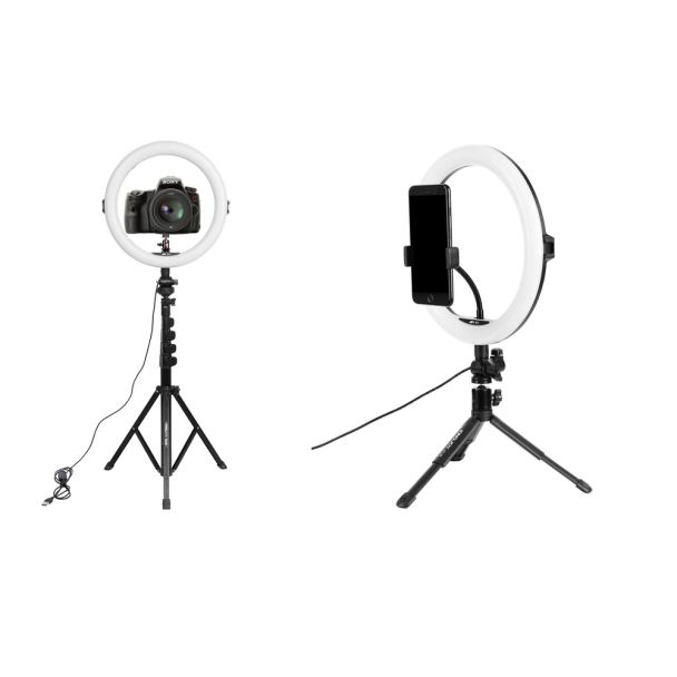 Een voordelige maar complete set voor de beginnende vlogger! Het krachtige ringlicht wordt op het lampstatief geplaatst waarna je je camera of smartphone erin plaatst. De gelijkmatige, dimbare verlichting is kan warmer of koeler licht geven en is ideaal voor art- of beauty-vlogs.