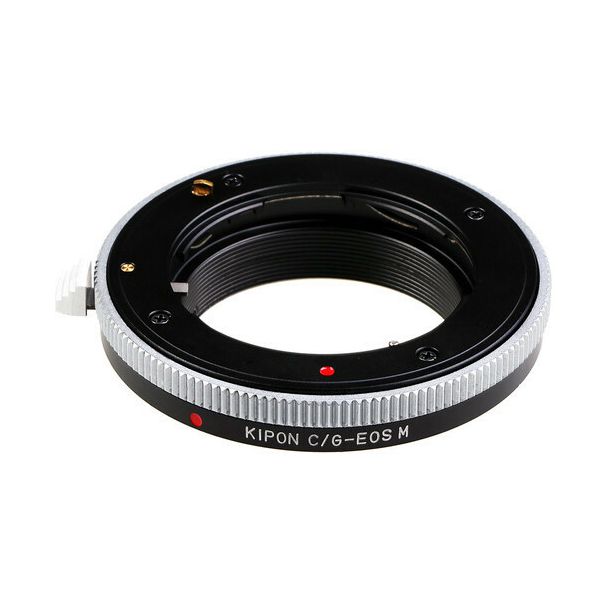 Unieke hoge kwaliteits adapter van Kipon om de analoge Contax G (big geared) mount lenzen te monteren op een Canon EOS M mount camera. Focus op oneindig is mogelijk.