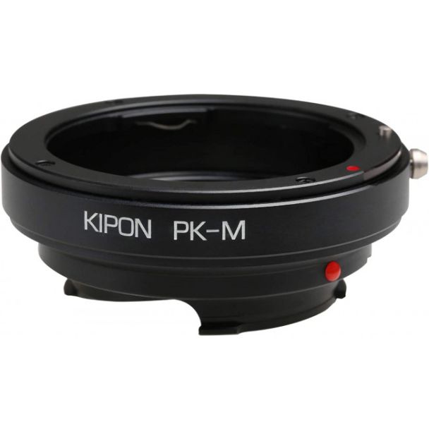 Unieke hoge kwaliteits adapter van Kipon om de Pentax PK mount lenzen te monteren op een Ricoh M mount camera. Focus op oneindig is mogelijk.