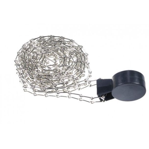 Een metalen ketting + gewicht geschikt voor de achtergrondsystemen: MB-1, MB-2, MB-3 en MB-4. Bij gebruik van zwaardere rollen (boven de 2 meter breedte) is deze sterke metalen ketting aan te raden. De ketting wordt geleverd met een gewicht, zodat hij steeds mooi recht blijft hangen.
