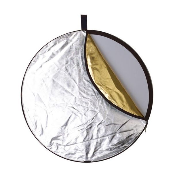 5 in 1 Reflectiescherm met een zachtgouden kant i.p.v. de standaard gouden kant. Het zacht goud zit midden tussen zilver en goud. Hierdoor wordt eigenlijk de optimale combinatie bereikt tussen het (soms te koude) zilver en het warme goud. Leverbaar in diverse maten.