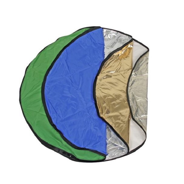 7 in 1 Reflectiescherm met naast de standaard kleuren ook chroma key groen en chroma key blauw. Hierdoor kun je ook als het nodig is eenvoudig je product of model vrijstaand vastleggen.