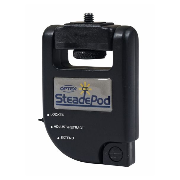 De Compact SteadePod is een uniek camera-ondersteuningsapparaat waarmee u scherpere foto's kunt maken met minder onscherpte in uw foto's. Het lijkt op een roestvrijstalen meetlint - u bevestigt het ene uiteinde aan uw camera, trekt de intrekbare 6' stalen kabel naar de grond, houdt deze vast met uw voet en de lichte spanning op de kabel geeft u een stabiele camerapositie. De SteadePod is gemakkelijk mee te nemen en snel op te zetten en is geweldig voor situaties met weinig licht en voor het werken met tele- en zoomlenzen op digitale camera's en video.
