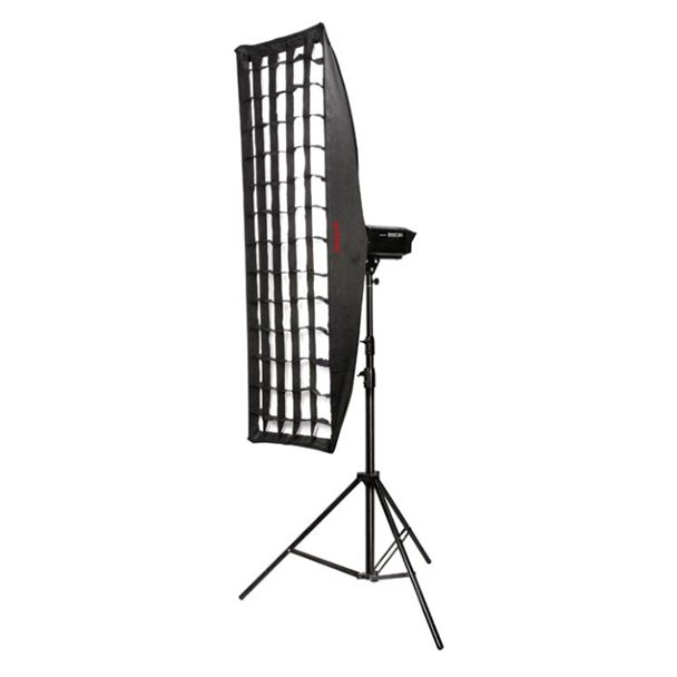 Striplight softbox voor zien van (afneembaar) grid. De vorm maakt het mogelijk om duidelijk af te wijken van de standaard belichting.