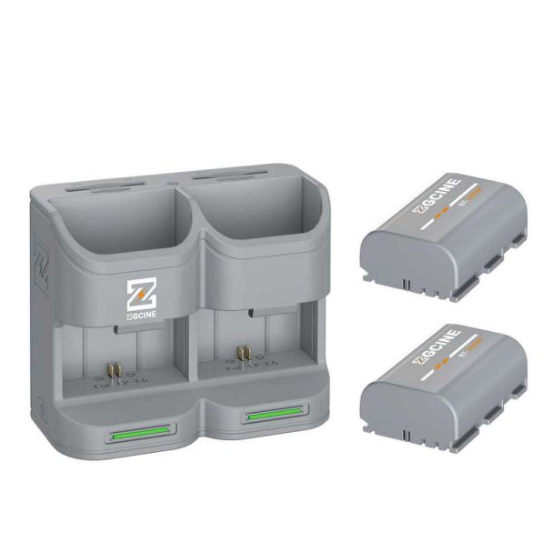 De Charging Case wordt geleverd inclusief 2x ZGCINE BT-LPE6P high-capacity 7.2 V accu van 2600mAh. Volledig gedecodeerd, zonder pop-ups en met volledige communicatie met de camera.
